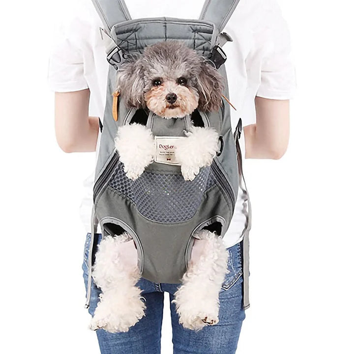 The Fur Out backpack is a "baby Bjorn" type carrier - specially designed for front carrying. The front-facing design allows your pet to sit tight while taking in the sights and sounds of the world around them.