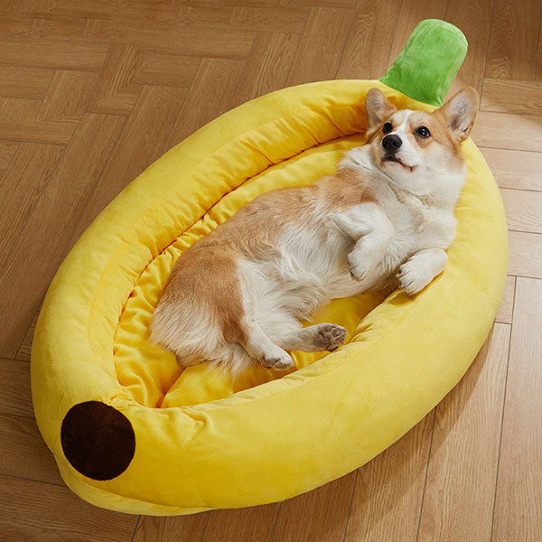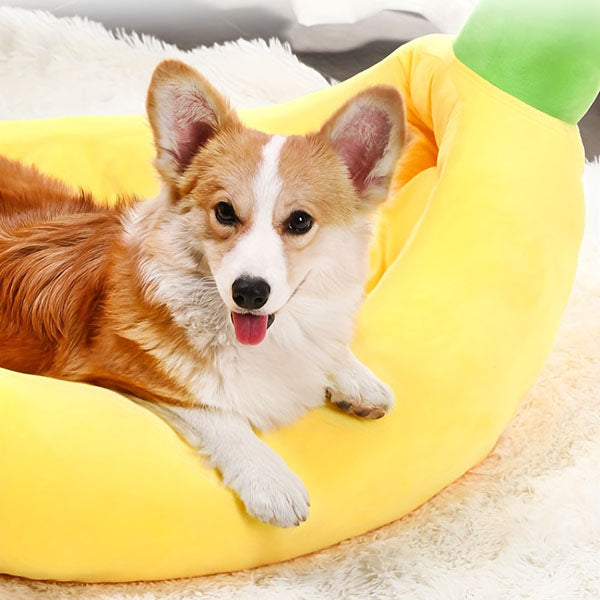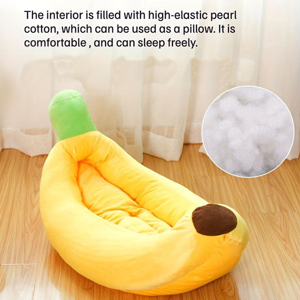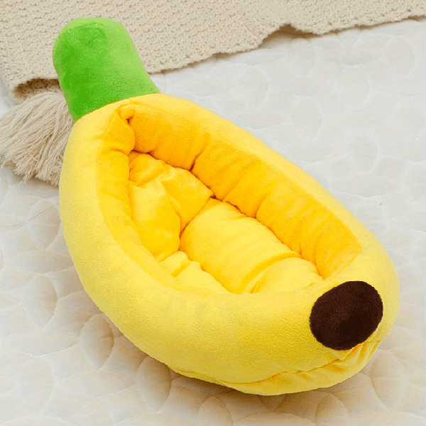 Enjoy seeing your pet curled up in a cheerful yellow banana. Your adorable friend is sure to bring a smile to your face as they sprawl on this banana bed for small dogs or cats.