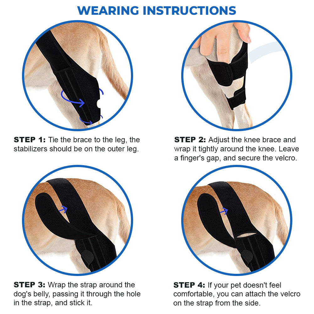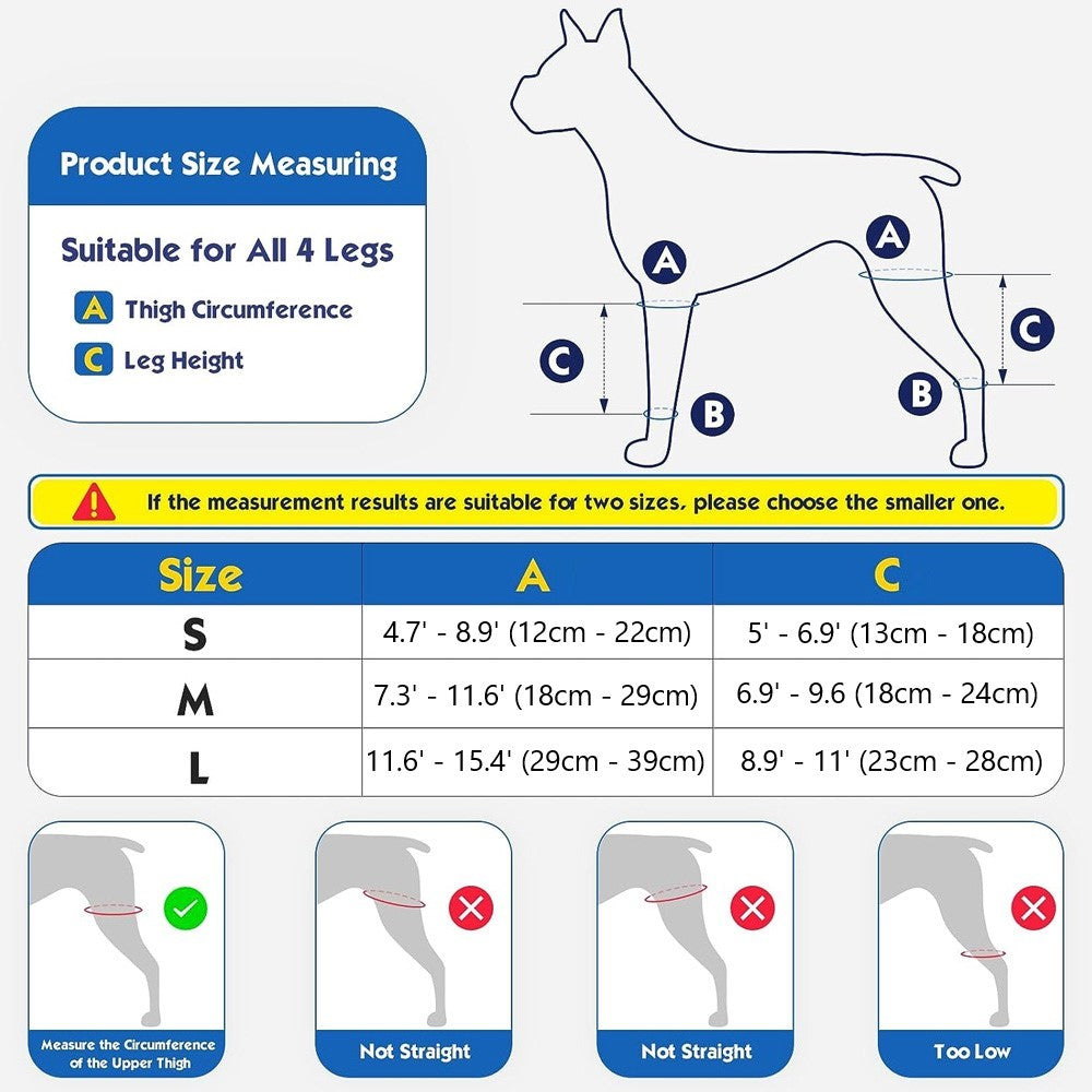 Dog Recovery Knee Brace Support provides compression to the affected limb, helping alleviate pain and inflammation while also helping promote efficient blood circulation.