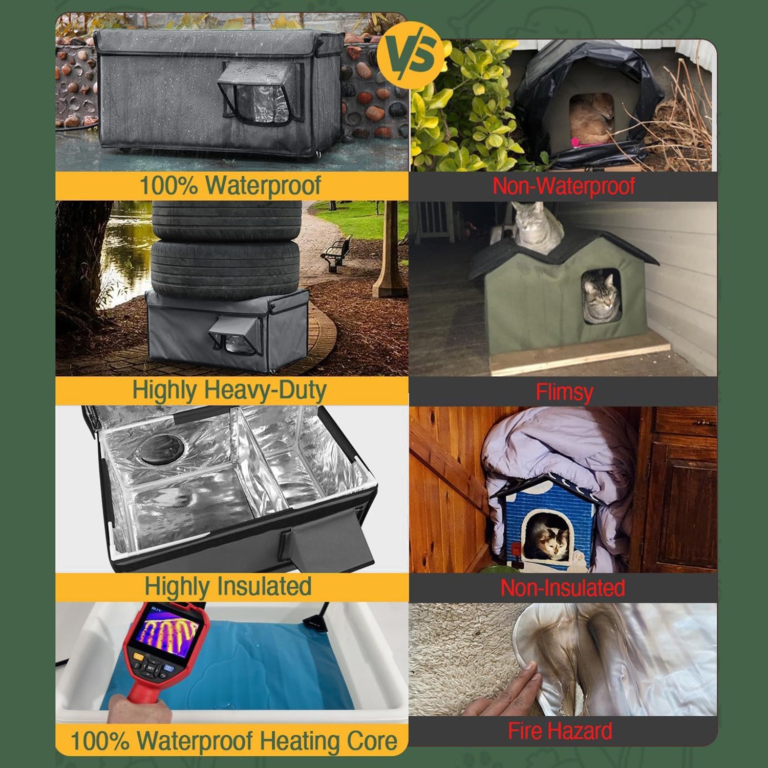 šš¶š“šµ-š¦šš®š»š±š®šæš± šš²š®šš²š± šš¼šæš²: Featuring UL-tested heating wire and a fully waterproof design, the included outdoor heated cat bed meets strict safety standards, delivering safe and consistent warmth for your outdoor furry friends.