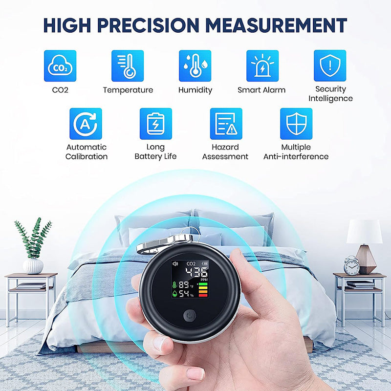 【Multi Application】Suitable for home, school, office, travel, indoor&outdoor, agricultural planting, production warehouse, and other occasions. We offer 3 months free return and lifetime warranty for our mini CO2 detector.