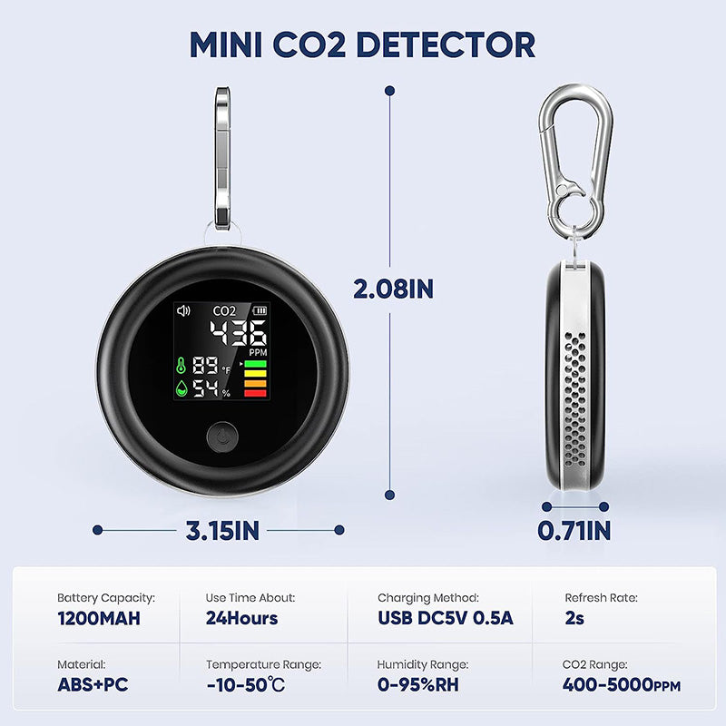 Mini CO2 Detector - 3-in-1 Travel Carbon Dioxide Detector