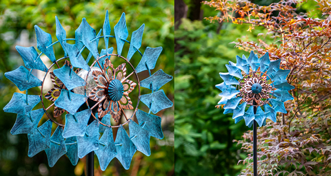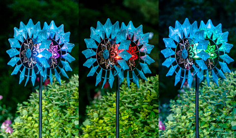 - Light up your garden with seasonal color and impress your neighbors. Light up the evenings with our new yard art wind spinner and add a touch of ambiance to your patio, lawn, or garden.
