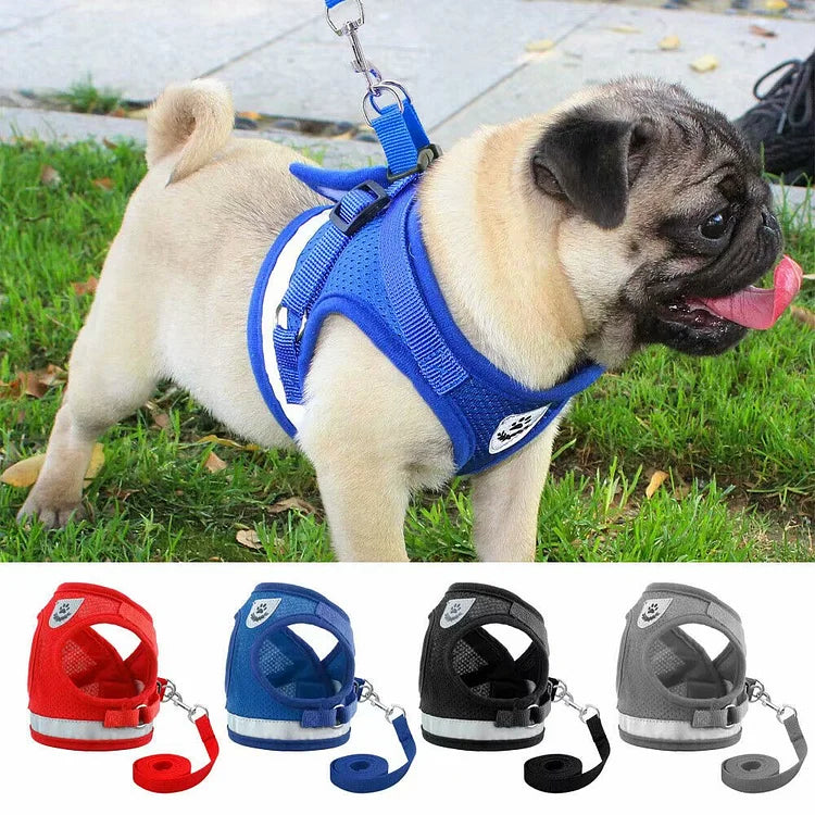 This leash and harness are soft sandwich mesh, a quick-release buckle, and an adjustable chest belt. It is lightweight yet has a high permeability. Smooth edges reduce rubbing and pulling on your dog's legs and neck, allowing him to stroll more easily. You can provide your dog with the most comfortable environment by adjusting the chest. Furthermore, with the buggy, you can easily dress your pet.