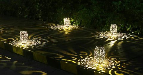 •  Its attractive hollowed-out pattern and subtle glow will light up your patio in a special way.