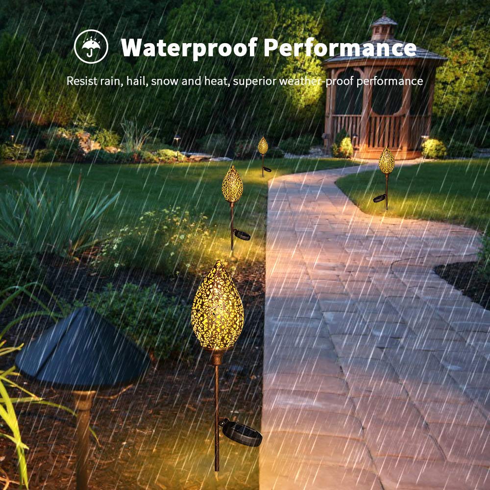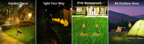 Durable construction and weather resistant feature of the garden solar lights ensures long lasting performance under most weather conditions.
