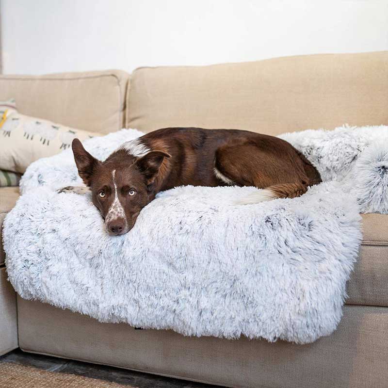 Our Calming Furniture Protector is specially designed to reduce your pup's anxiety whilst allowing you to keep them where they feel most safe, next to you! The raised rim creates a sense of security whilst the premium ultra-soft fur keeps your dog cozy and protects your furniture!